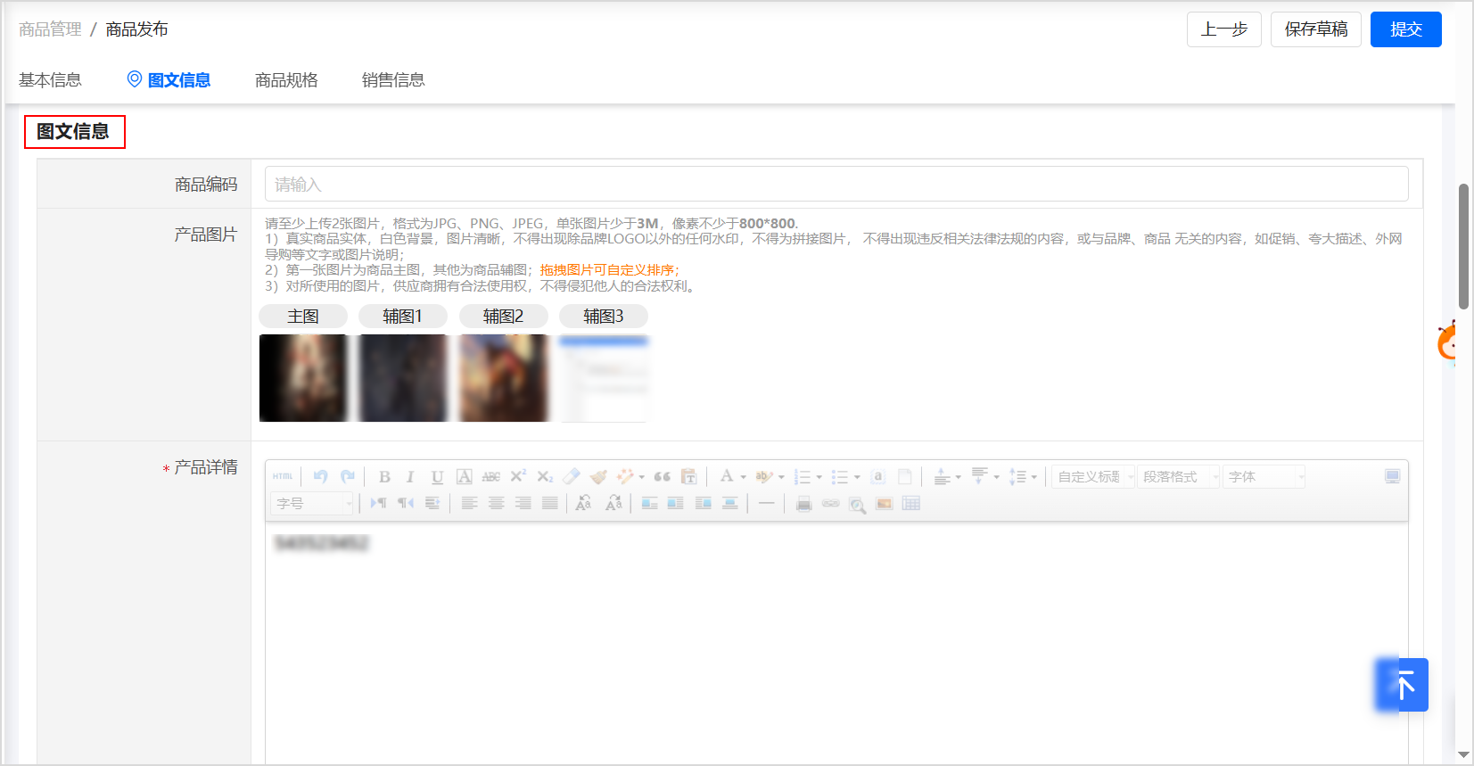 在 圖文信息 面板,查看商品圖文信息。
