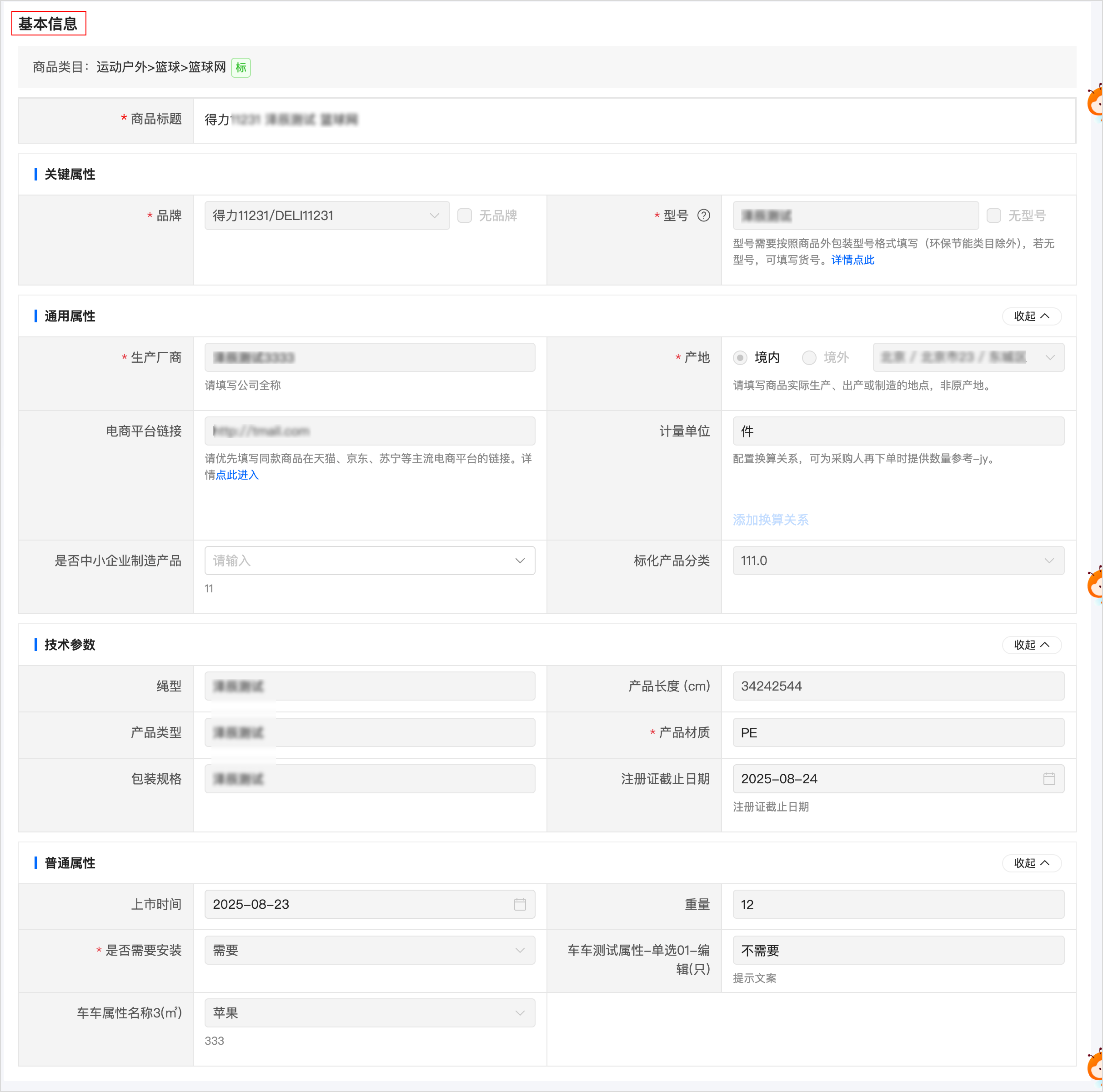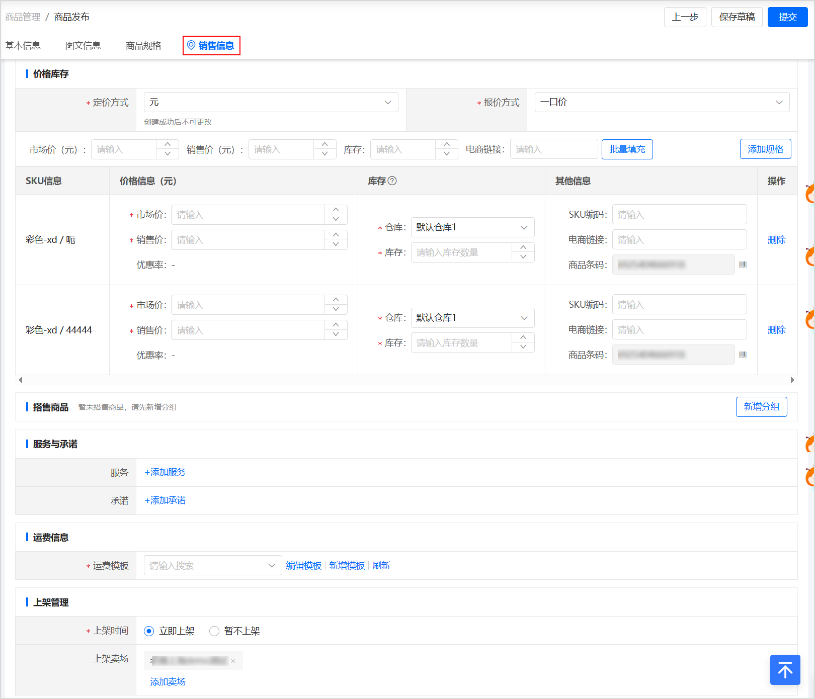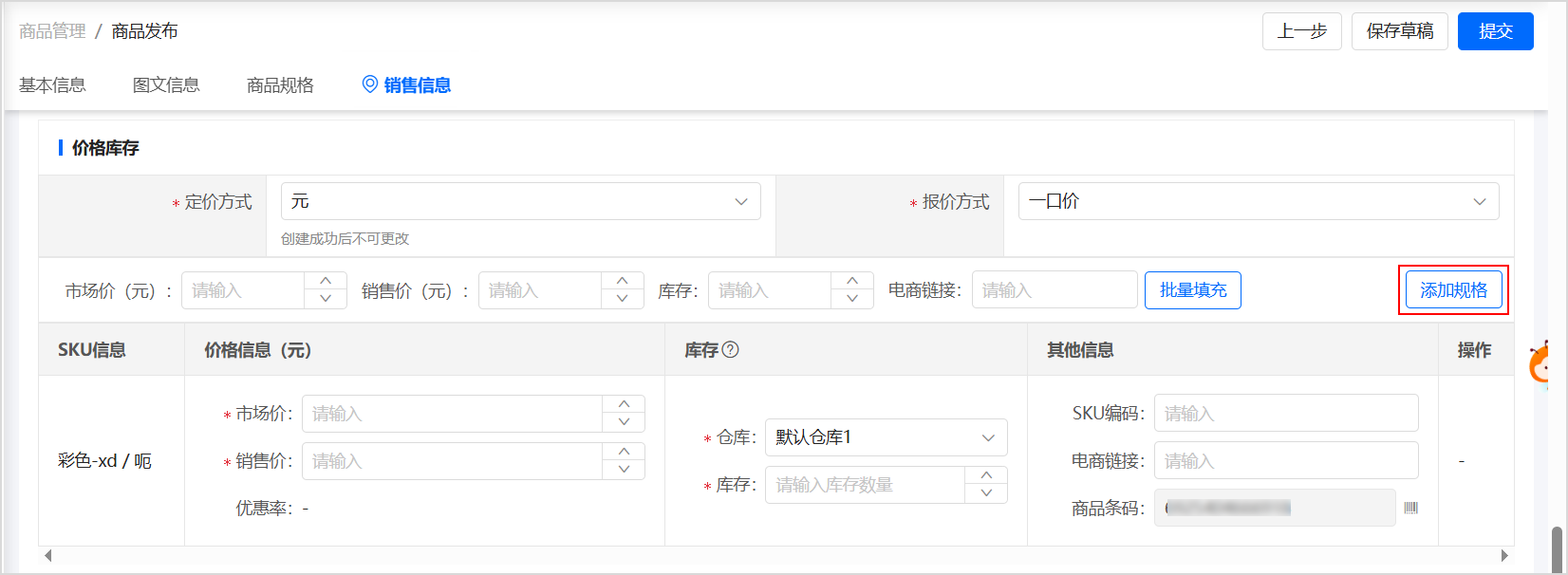 進入 商品發(fā)布 頁面,填寫商品信息。