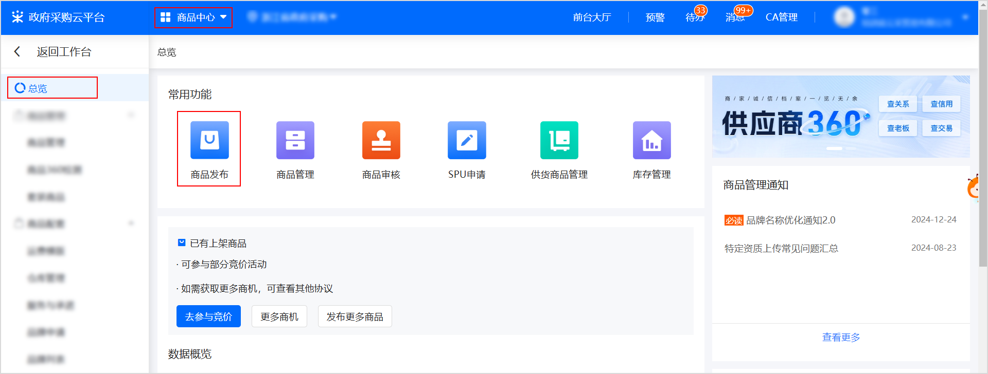 菜單路徑:我的工作臺 > 商品中心 > 總覽 > 商品發(fā)布