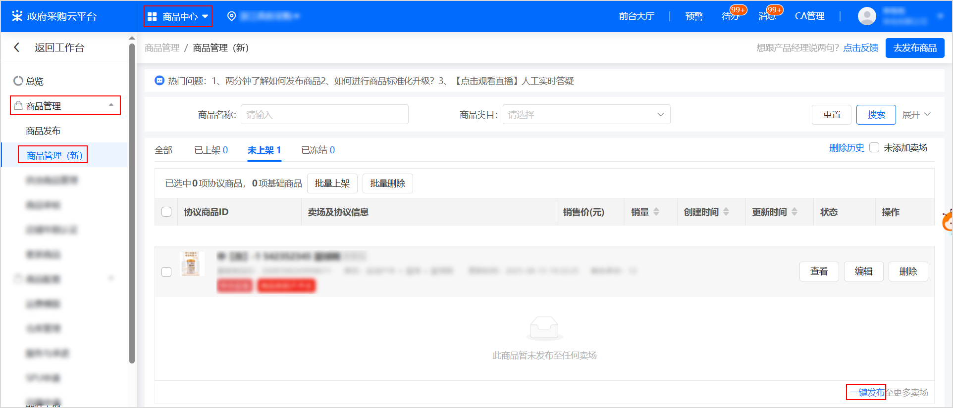 菜單路徑:我的工作臺(tái) > 商品管理 > 商品管理(新)